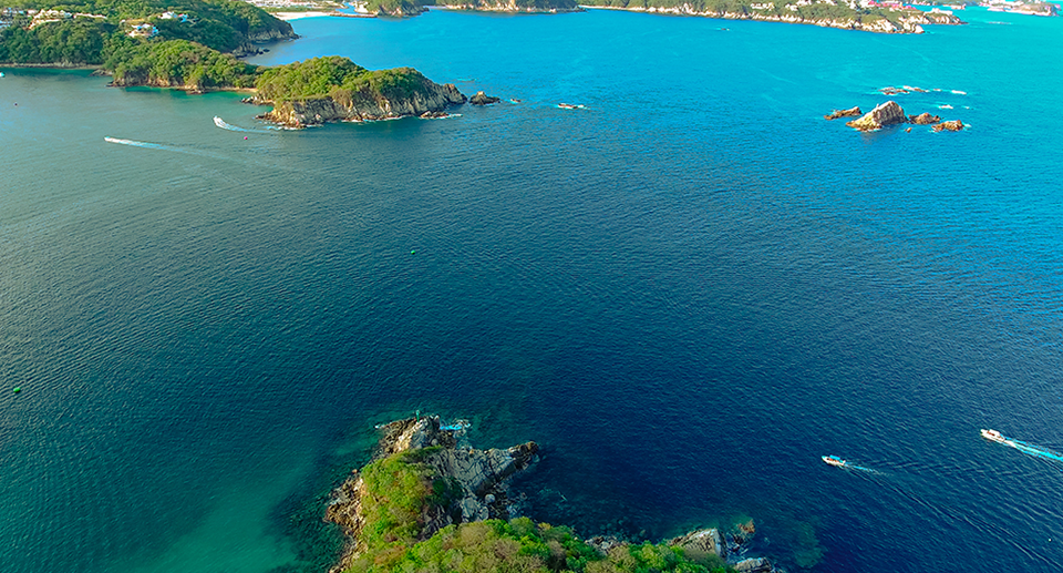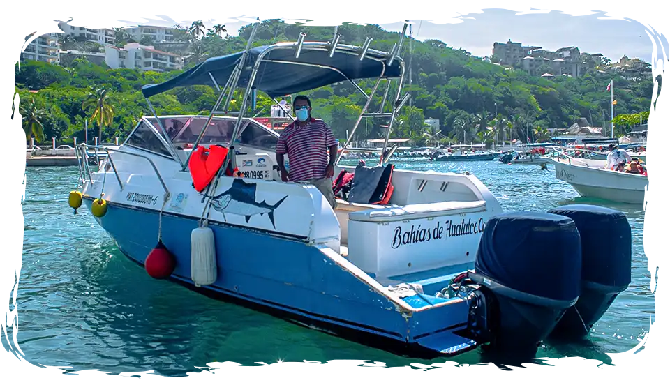 Recorrido marítimo más completo por las Bahías de Huatulco partiendo de la Dársena de Santa Cruz hasta la hermosa Bahía de San Agustín.